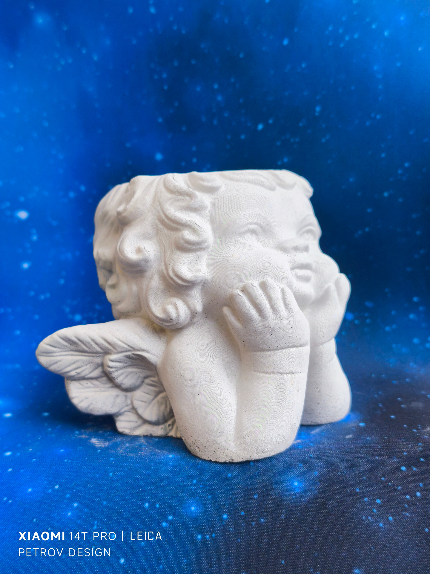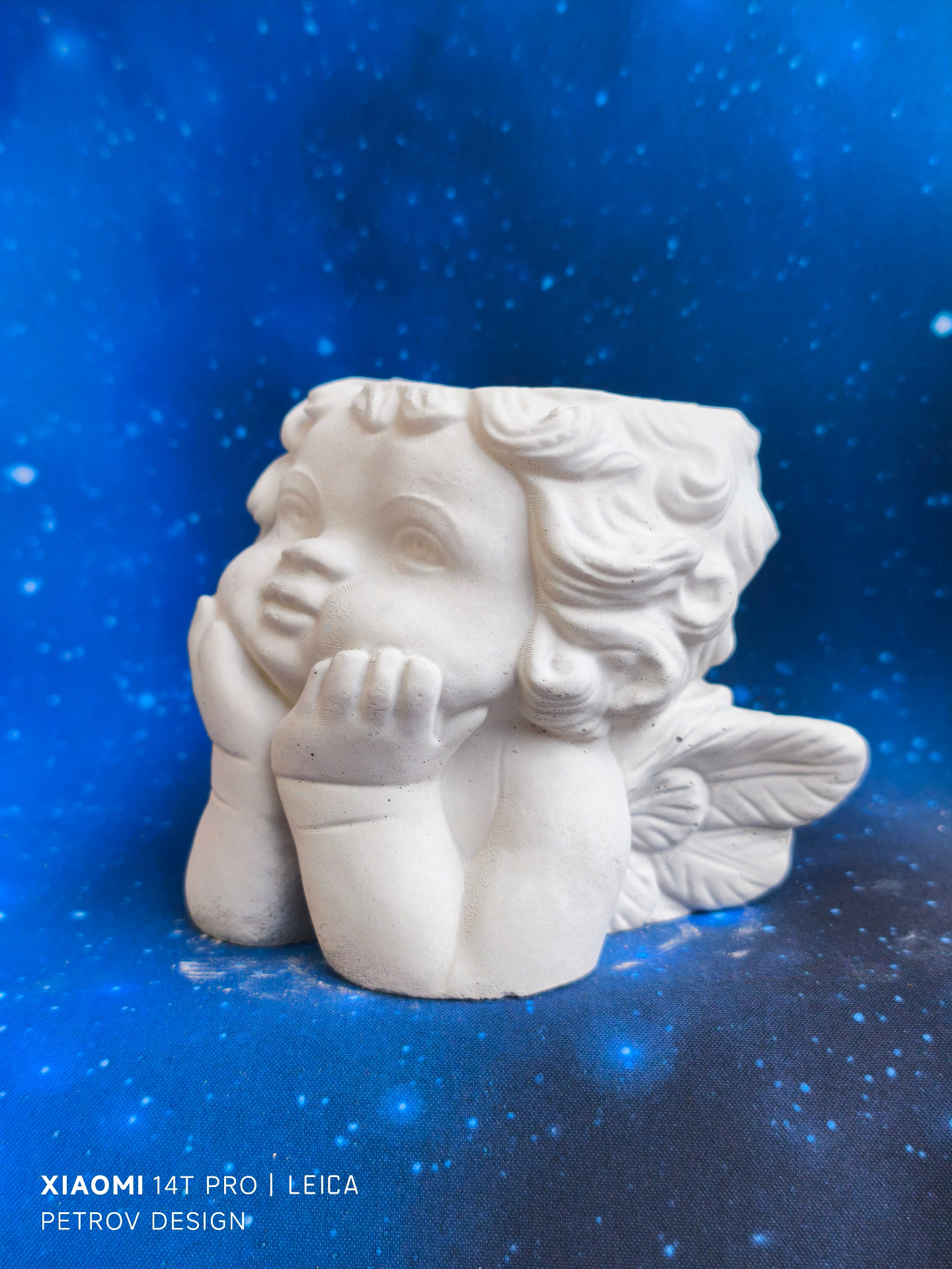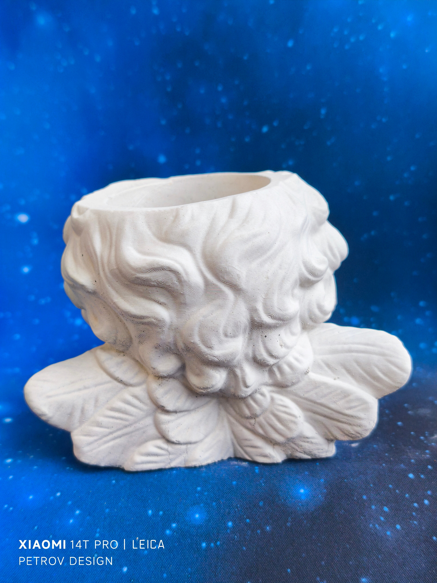 Betonový, ručně odlévaný květináček v designu "andílka". Ideální do interiéru nebo třeba na hřbitov.