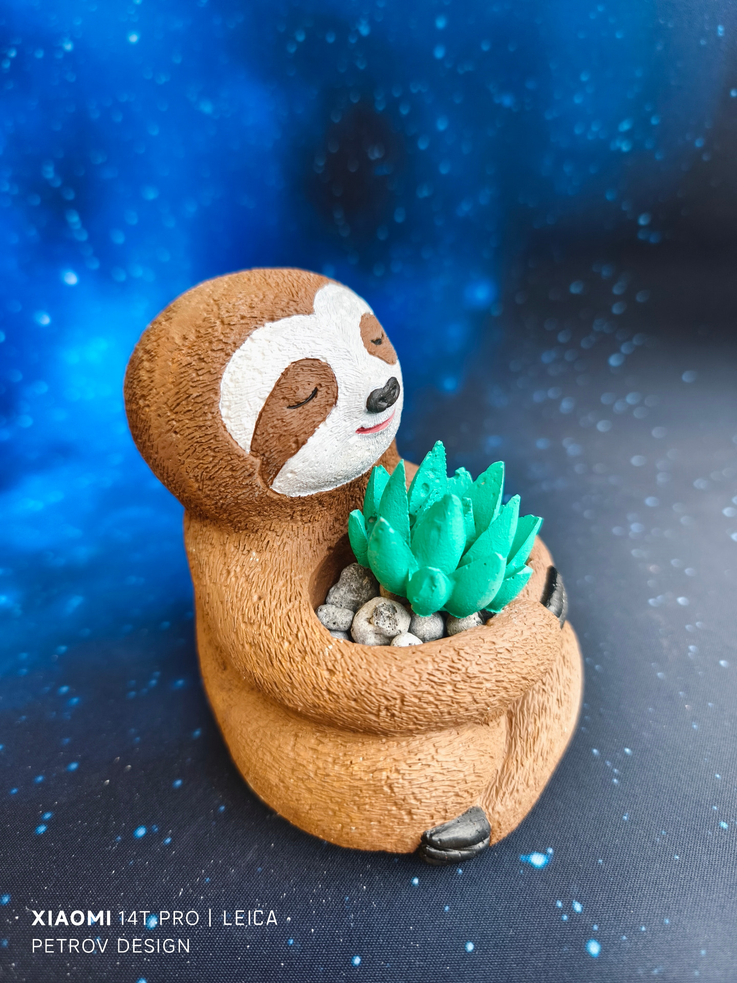 Betonový, ručně odlévaný květináček v designu "lenochoda". Nabízíme také v designu přírodního betonu nebo bílo zlatý. Sukulenty nejsou součástí postavičky ale lze je na přání dodat.