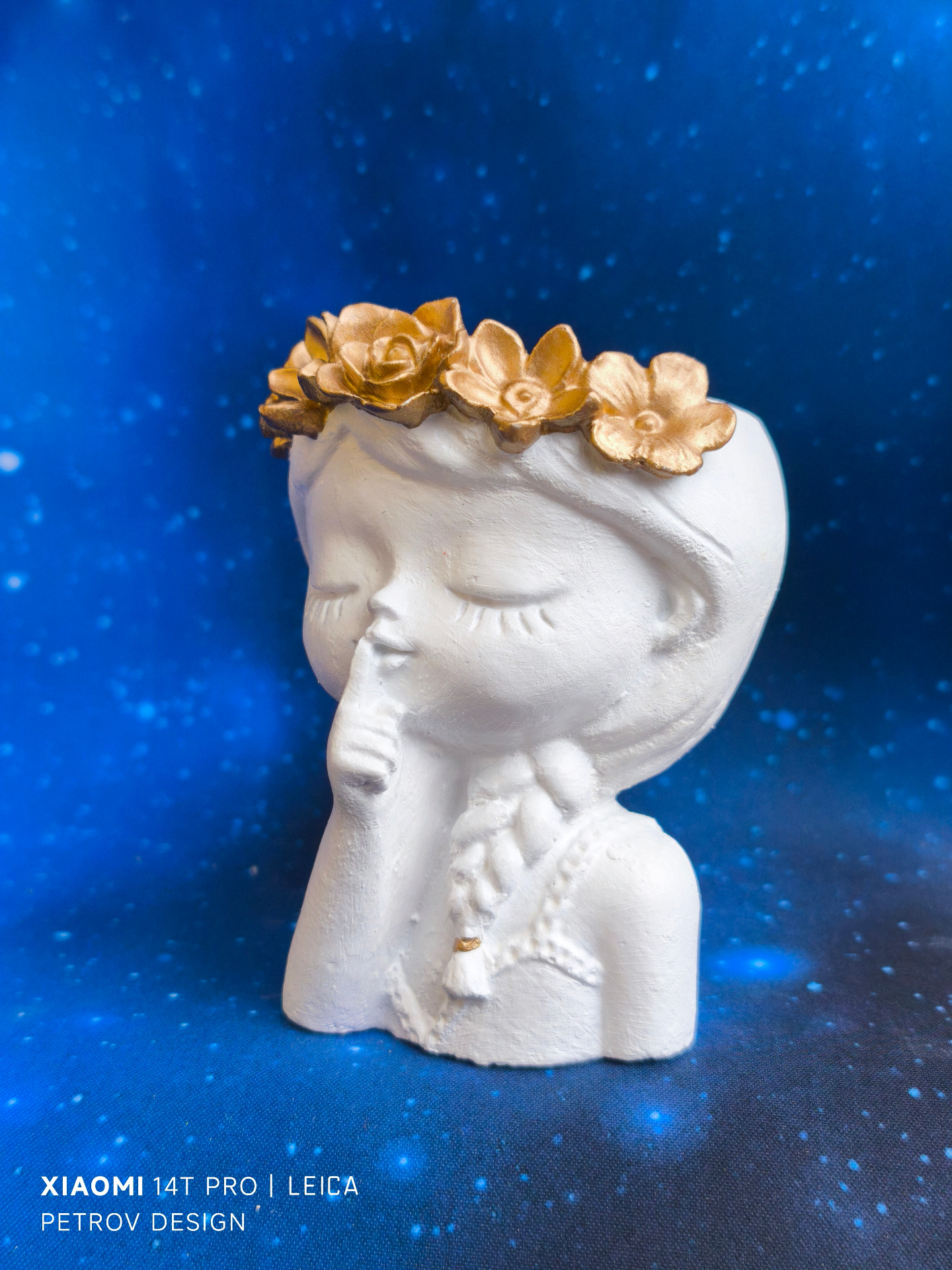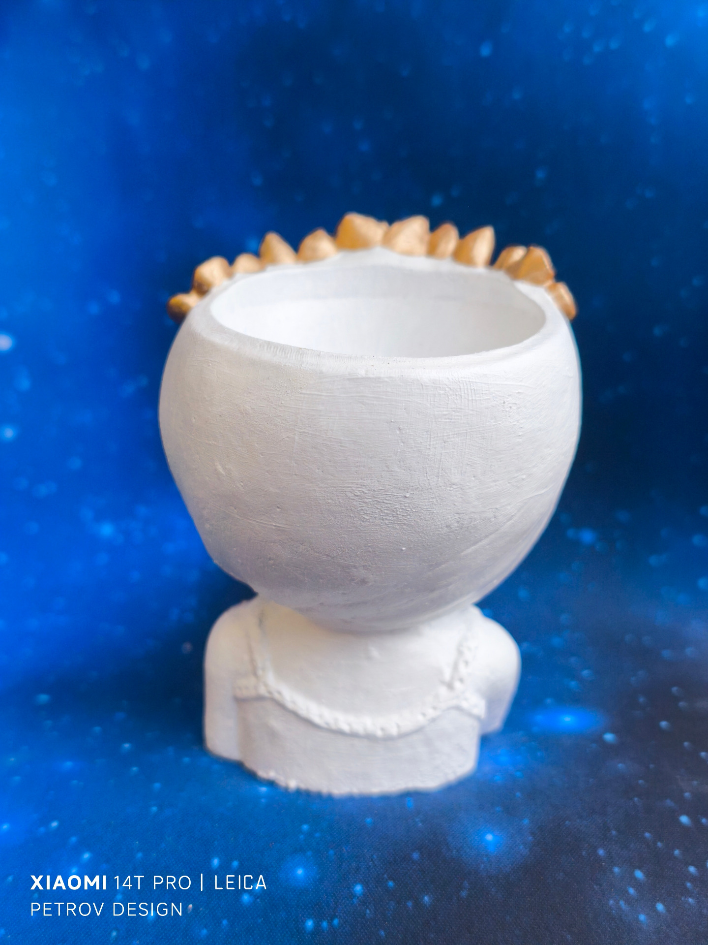 Betonový, ručně odlévaný a malovaný květináček v designu "víly". Nabízíme také v sadě 3ks.