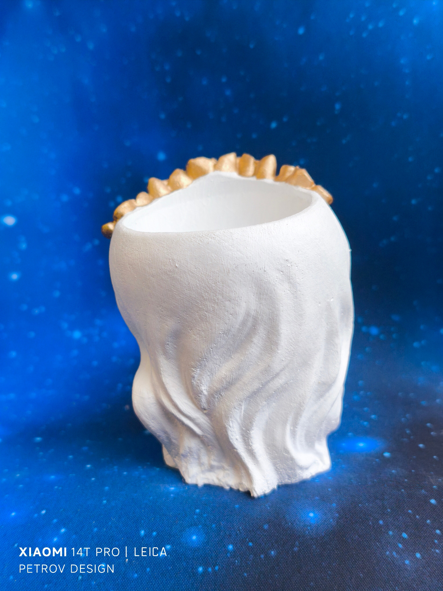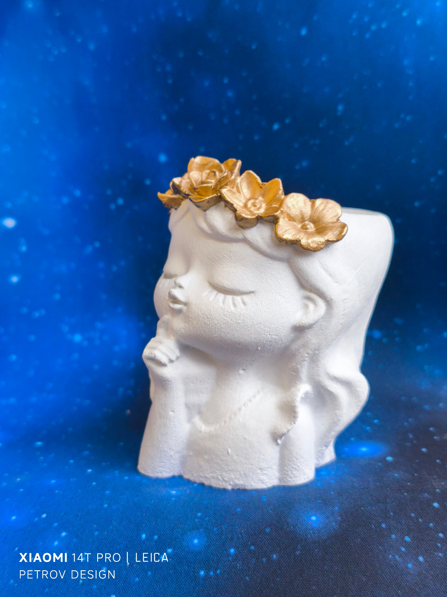 Betonový, ručně odlévaný a malovaný květináček v designu "víly". Nabízíme také v sadě 3 ks.