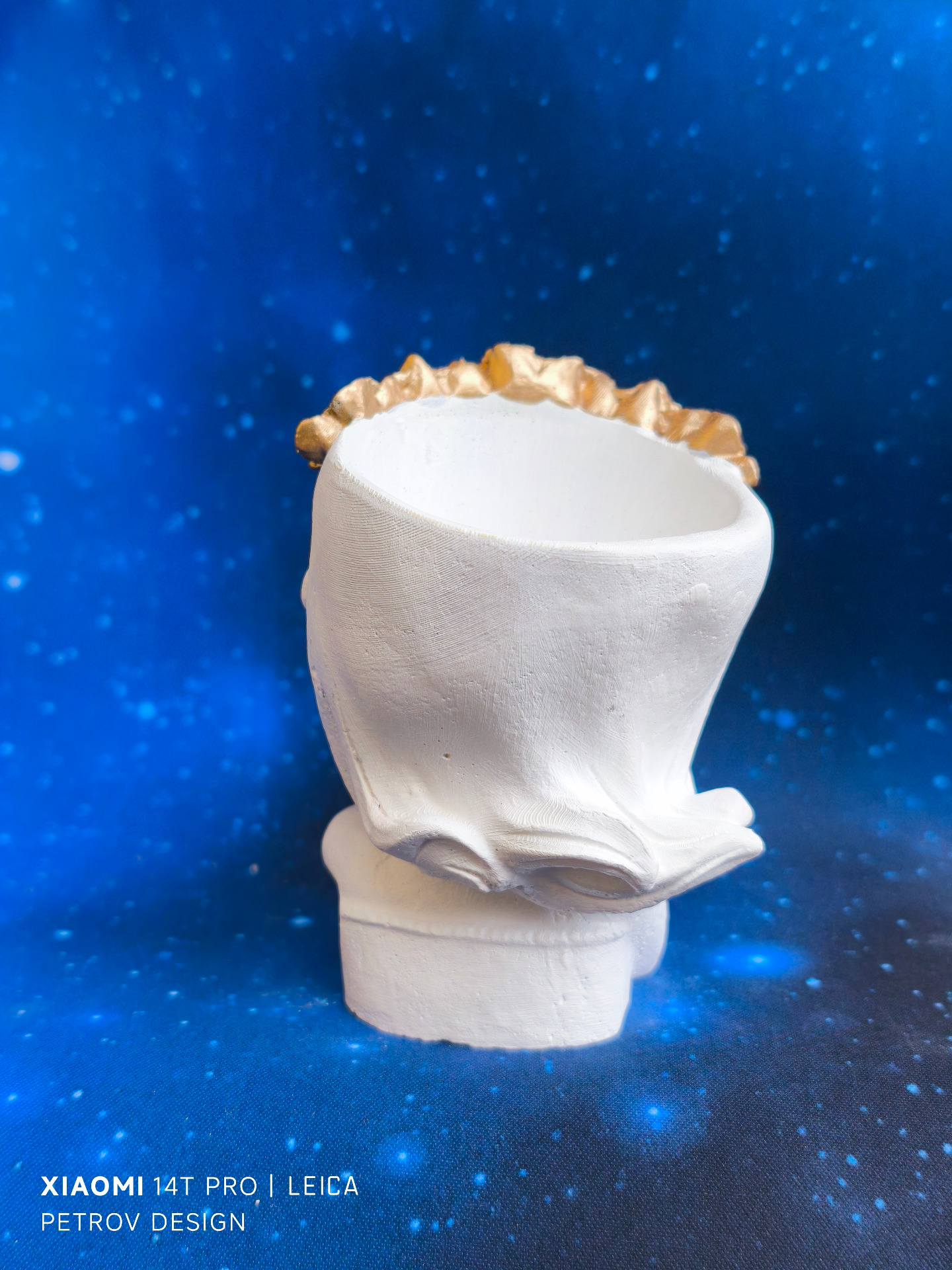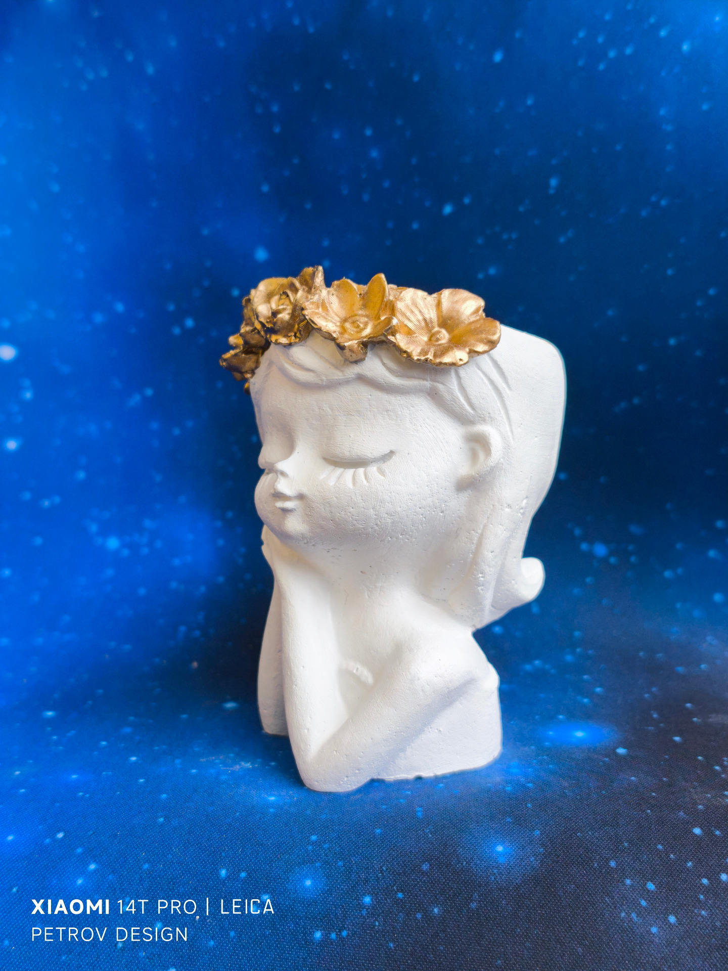 Betonový, ručně odlévaný a malovaný květináček v designu "víly". Nabízíme také v sadě 3ks.